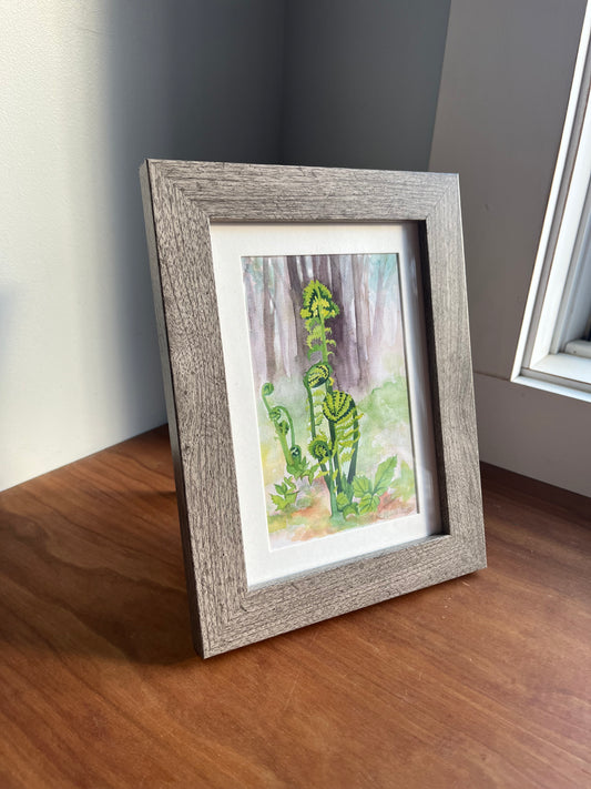 Framed Fiddlehead Ferns Watercolor
