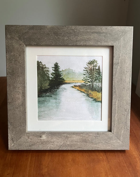 Square Framed Springtime River Watercolor