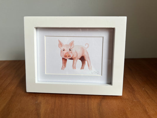 Mini Framed Pig Watercolor