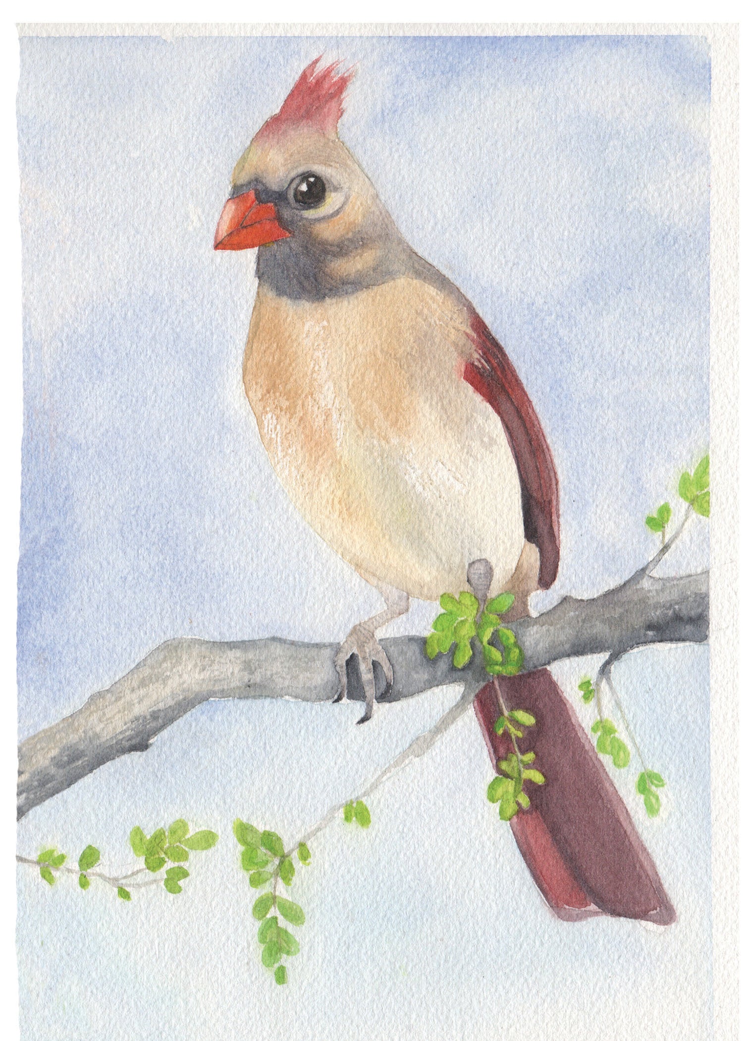 Giclee print of my female cardinal watercolor. Pair this print with the male cardinal or buy it alone. Choose a matted or unmated print.